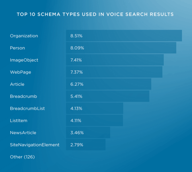 Below are Backlinko’s findings around Schema distribution in voice search results.