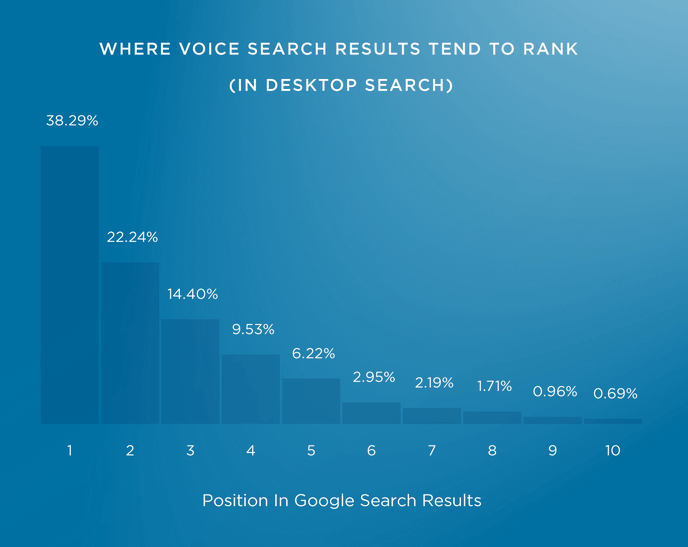 Finally, content that ranks well on the desktop appears to also rank well in voice results. This makes sense. Nearly 75% of voice results on Google Home “came from a page ranking in the top 3 for that keyword.”